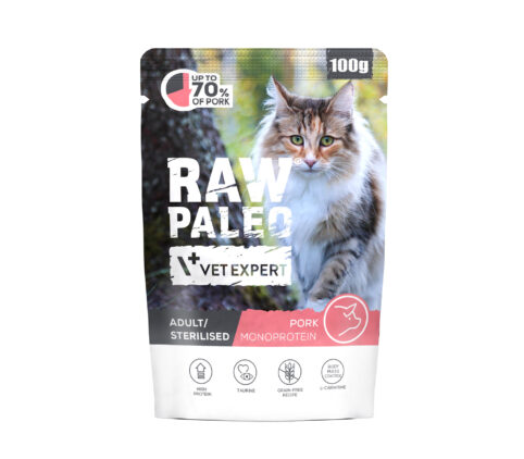 RAW PALEO Pork Adult/Sterilised ir pilnvērtīga barība pieaugušiem kaķiem no 1 gada vecuma. Lasīt vairāk
