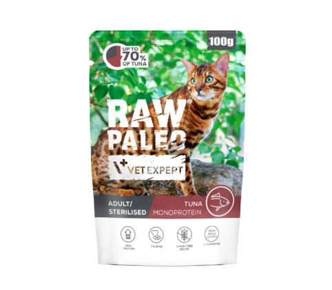 RAW PALEO Tuna Adult/Sterilised ir pilnvērtīga barība pieaugušiem kaķiem no 1 gada vecuma. Lasīt vairāk