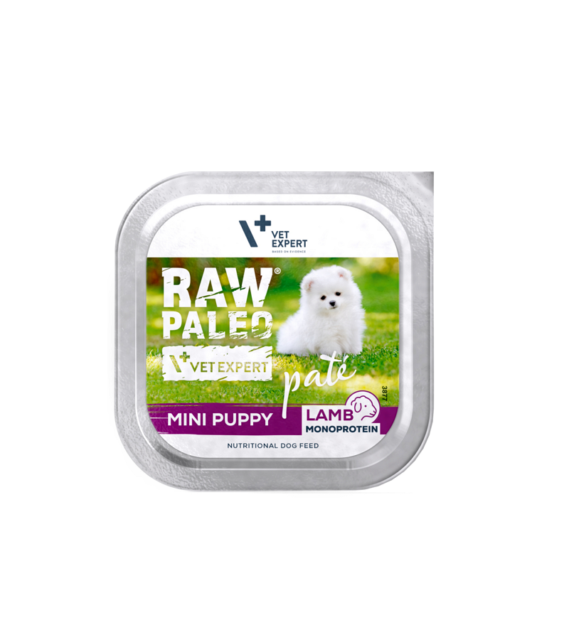 RAW PALEO PATE MINI PUPPY LAMB ir pilnvērtīga maigas tekstūras pastēte, kas paredzēta veselīgiem augošiem mazo šķirņu suņiem no atšķiršanas līdz briedumam (apmēram 1 gada vecumam). Sastāvā iekļauts dabisks prebiotiķis — inulīns. Lasīt vairāk